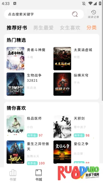 2.在首页这里我们可以看到非常丰富的小说资源种类,如果想要导入本地书籍资源,我们需要点击右上角的“导入书籍”按钮