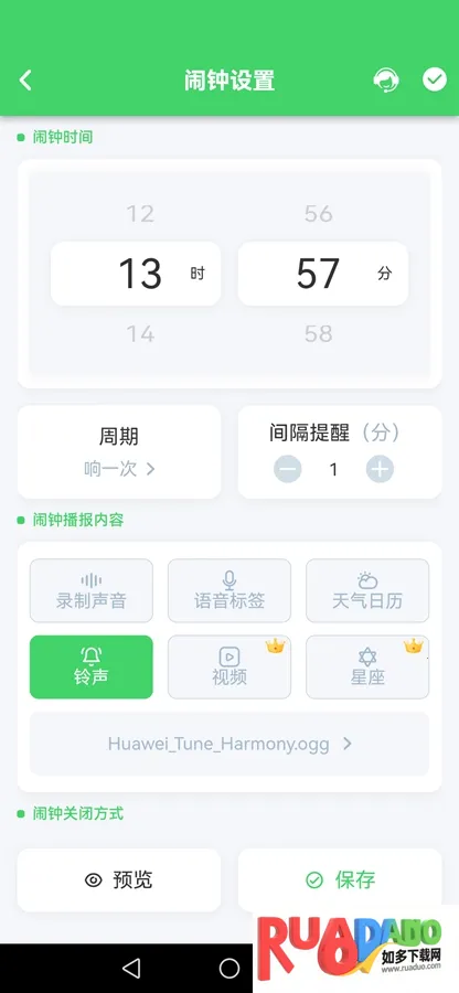 4. 有多种舒缓闹钟铃声,还能自定义,满足个性需求。