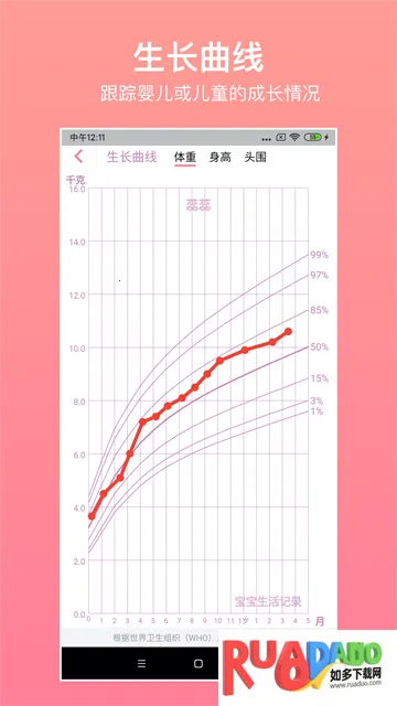 4. 会根据记录的成长数据自动生成生长曲线图表,直观呈现发育趋势。