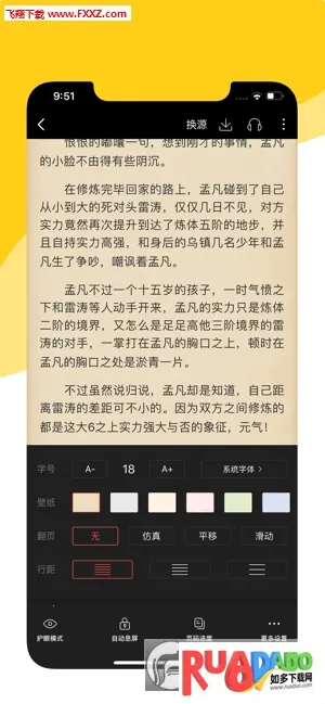 3. 背景壁纸翻页模式,现在都可以自定义设置,让你玩转阅扑小说。
