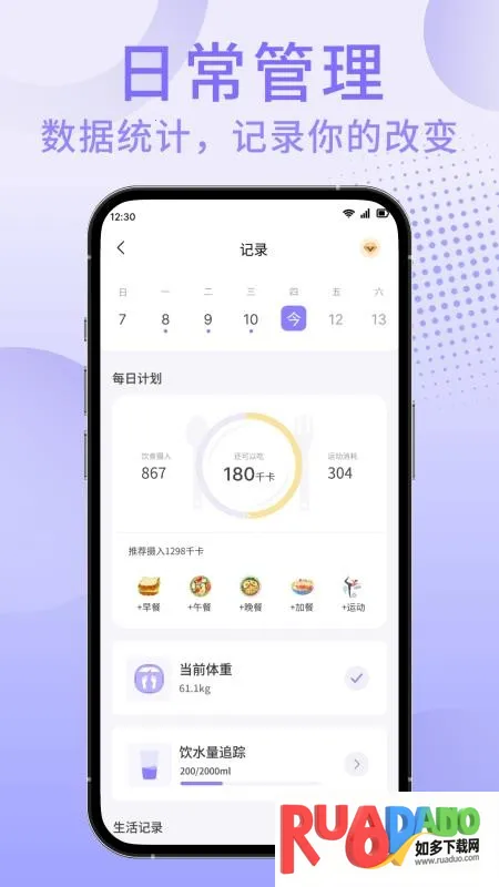 4. 享受科学减肥方法,掌握更多减肥瘦身攻略,精准统计日常全部信息数据,管理减肥动向。
