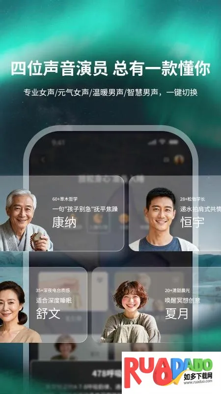 4. 精心设计四种不同声音人格,带来更贴心契合心境的疗愈陪伴。