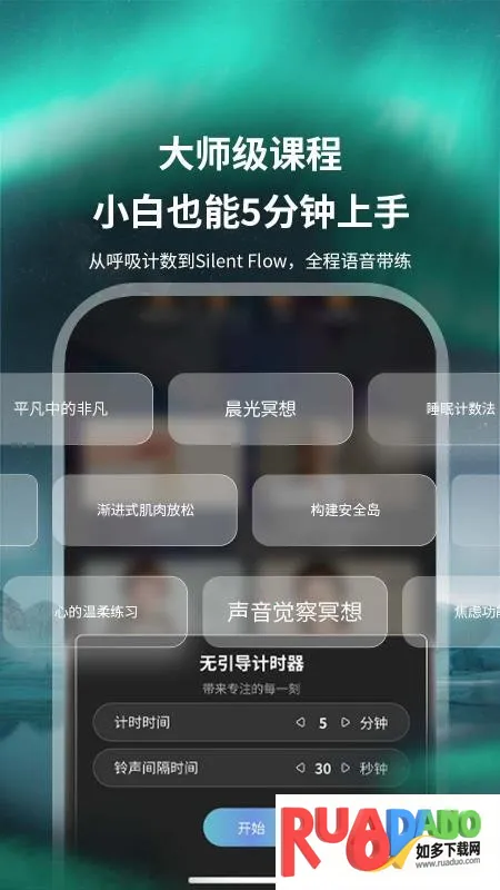 1. 集助眠冥想放松与呼吸训练于一体,提供动态优化沉浸高效的数字疗愈体验。