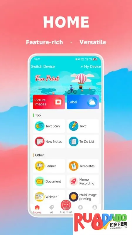 Fun Print2026是一款蓝牙打印机设备打印工具软件,能一站式打印图片、标签、文档等,有海量素材图库,支持文字扫描翻译、AI美颜等,可快速打印,多种格式兼容,操作便捷,满足多样打印需求。