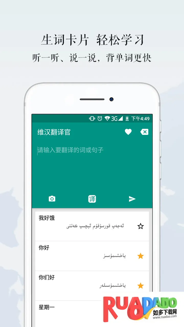 4. 采用极简设计风格,让工具回归本质,还对单词发音增加维吾尔语支持,全新升级单词本,单词卡片可随身记。