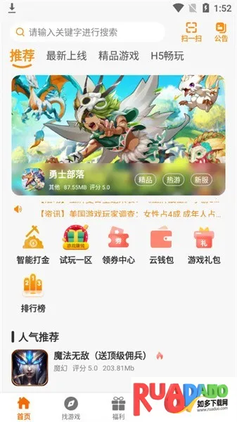 4. 全球首家实现大型游戏一键下载安装,自动适配机型,省去找数据包的麻烦。