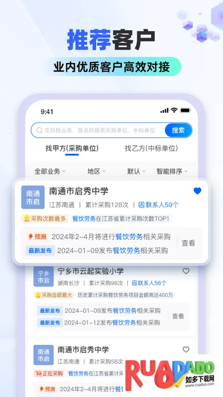 3. 全流程闭环服务,挖掘潜在竞标人,提供多维度画像,提升合作效率。