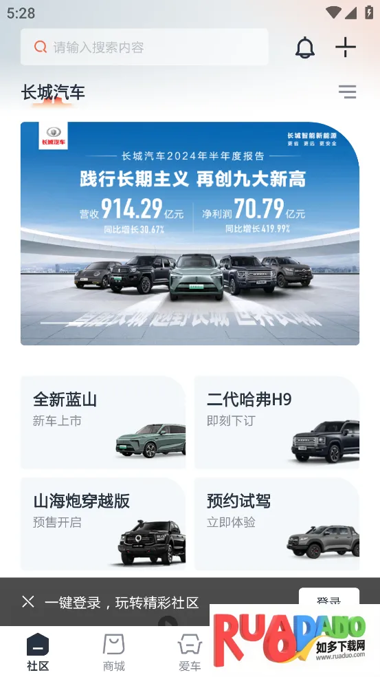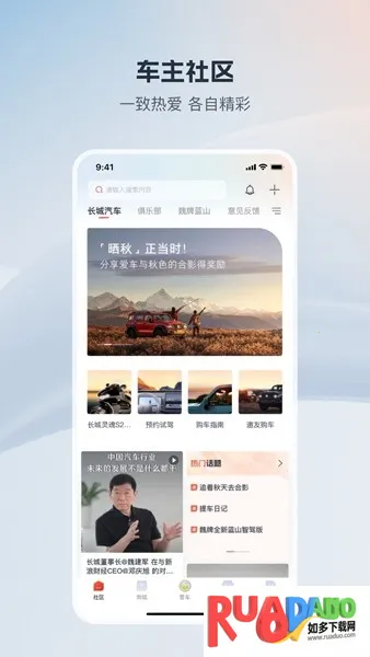 长城汽车app是官方推出的综合服务应用,聚合哈弗、魏牌等多品牌车型信息与服务。能一站式购车、用车、养车,有跨品牌车控、个性化推荐等功能,还可互动交流,积分互通,满足多样需求。