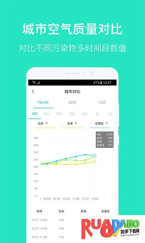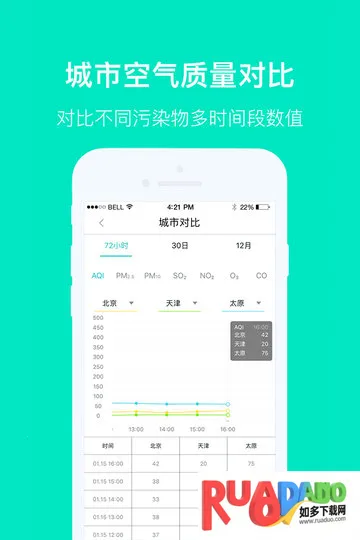 3. 支持多城市空气质量对比,涵盖全国及省内多个城市数据,适合公众管理者与专业人士。