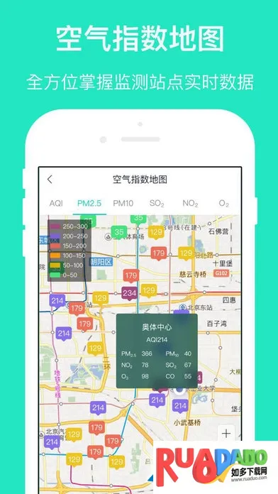 1、它能随时显示各城市的空气指数,让你不管身处何地,都能了解最新空气状况。