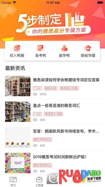 朗阁雅思可是学习雅思超实用的工具!它涵盖了雅思听说读写等全方位课程,还有托福、剑桥雅思真题解析系列等多种内容。这里有海量教学视频,随时能点开跟着学,和考试相关的资料全都免费,能省不少找资源的事儿。它的课程形式多样,快速选课方便你在线查看介绍、筛选并购买适合课程;精品录播课品质佳,可随时学;小班课能一键预约,导师在线互动答疑;线下面授课程也能快速预约。雅思专区实时更新口语题库、素材题库等,还有作文批改、考情预测。软件亮点满满,专业老师能打造优质课程,针对用户水平提供专业学习计划,有专业学业服务团队监督学习,有问题咨询能得到专业解答。新用户还有专享福利,签到能领积分换课程。用它学雅思,效率能大大提升,满足大部分人学雅思的需求,想考雅思的赶紧下载吧!