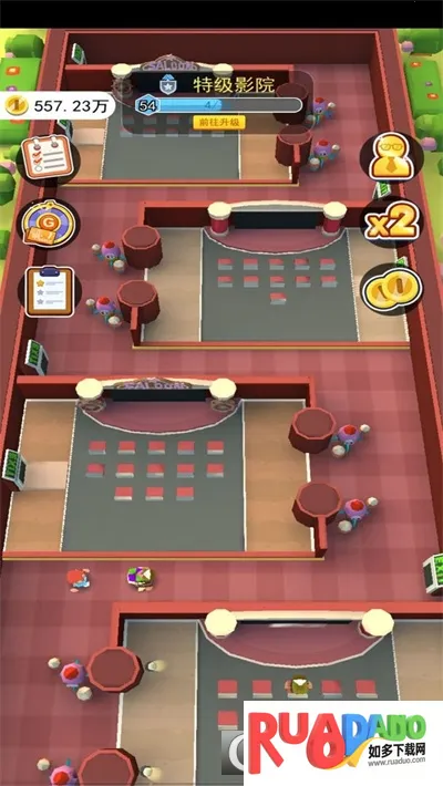 1. 以真实细腻的电影院场景为背景,搭配可爱清新画风与沉浸式交互体验,让玩家化身影院管理者打造专属影城。