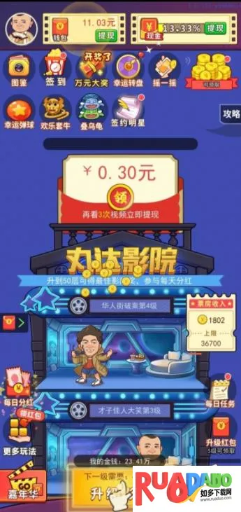 我的电影院是模拟经营休闲游戏,以真实影院为背景,画风可爱。玩家可打造专属影城,有精心设计的装潢、多样营销活动,玩法自由度高,还有丰富角色形象、实用设施,能见证影院成长。