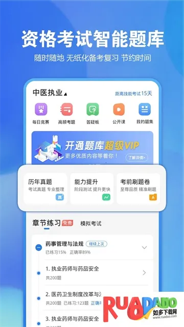 4. 设有资格考试智能题库,可随时随地无纸化备考复习,有效节约时间。