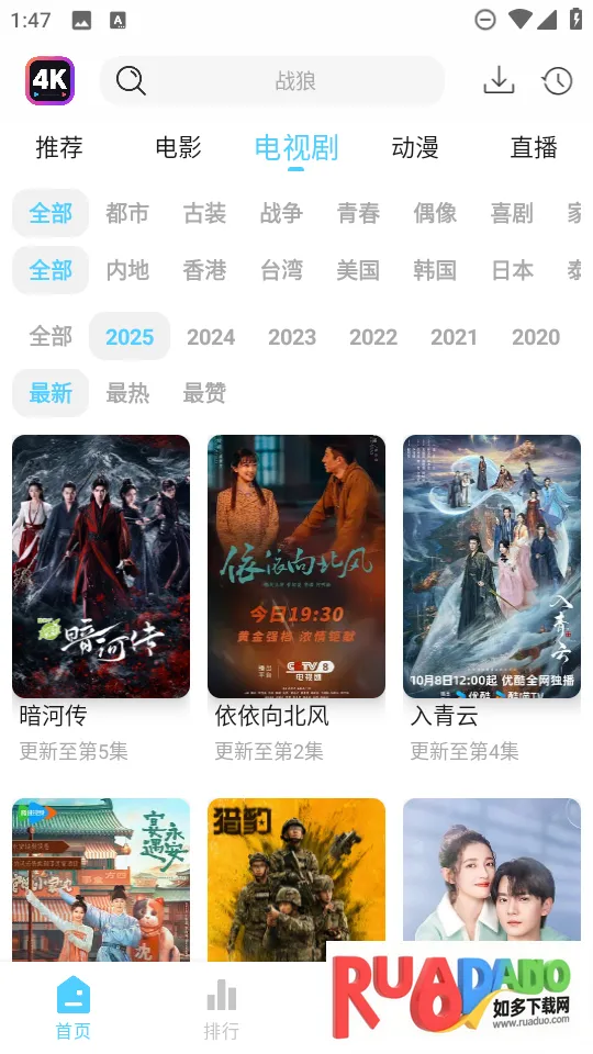 4K剧下饭是一款超棒的影视追剧软件。它能满足你追各类剧的需求,电影、电视剧、动漫、综艺等应有尽有。功能超强大,海量影视资源免费畅看,全程无广告打扰,给你纯净观影氛围。离线缓存超方便,节省流量,随时轻松追剧。界面简洁操作便捷,还有高效搜索引擎,快速定位想看的影视。它支持多种清晰度模式,能根据网速和习惯切换。系统会按你观影喜好自动推荐相似影视。还能提前下载剧集,没网络也能追。另外,它有下饭专题,适合碎片化时间观看,AI智能推荐也很贴心。而且多端同步,手机、电视、电脑三端数据互通。最新版本在下载速度上有提升,多线程加速技术让离线下载速度提升50%,还能选清晰度节省空间,赶紧下载体验吧!
