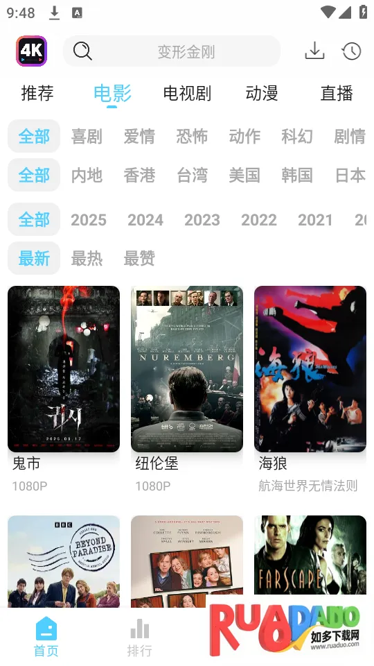 4. 提供4K专区,涵盖多种高端画质资源,定期更新片库。