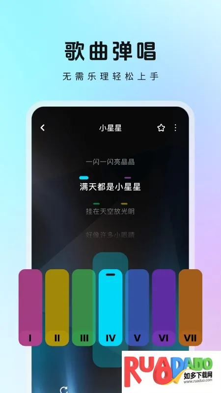 3. 它能识别弹奏是否正确,错误时及时提醒更正,还支持手动调节乐器音调和速度等参数,让用户享受沉浸式弹奏。没有基础的用户也能依据软件知识自由练习吉他,实现零基础自学,给用户全新体验。