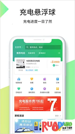 2. 找桩超轻松,支持地图列表双模式,实时查看周边充电站位置与状态。