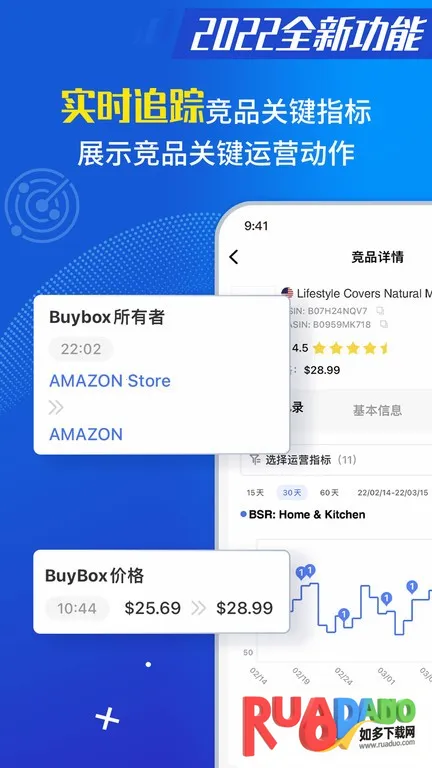 3、可进行竞品追踪,能获取竞品ASIN的历史BSR、SearchTerms关键词历史价格等十余项数据。