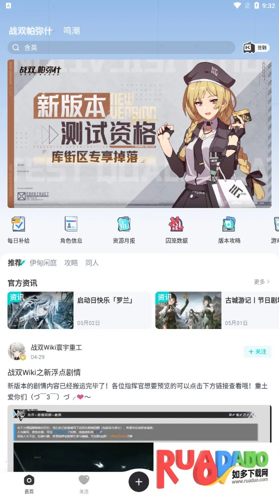 这里为玩家提供了丰富的游戏资讯、实用攻略和实时战绩数据,新手能借此轻松上手,老玩家也可不断提升。社区活跃,能与其他玩家互动交流,分享游戏心得与创作。官方社区一键直达,还有专属资格等你来约,参与社区活动有机会获得测试资格。攻略教学佳作尽赏,同人太太亲切交流。游戏福利轻松获取,签到就能拿到活动角色研发券、养成材料等。战绩数据复盘分析,一键查询账号资源及囚笼数据。更多功能持续研发,能满足你对游戏的各种需求,绝对值得体验!