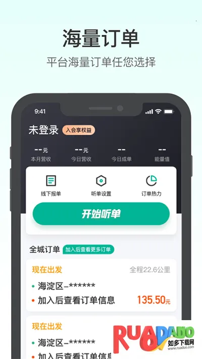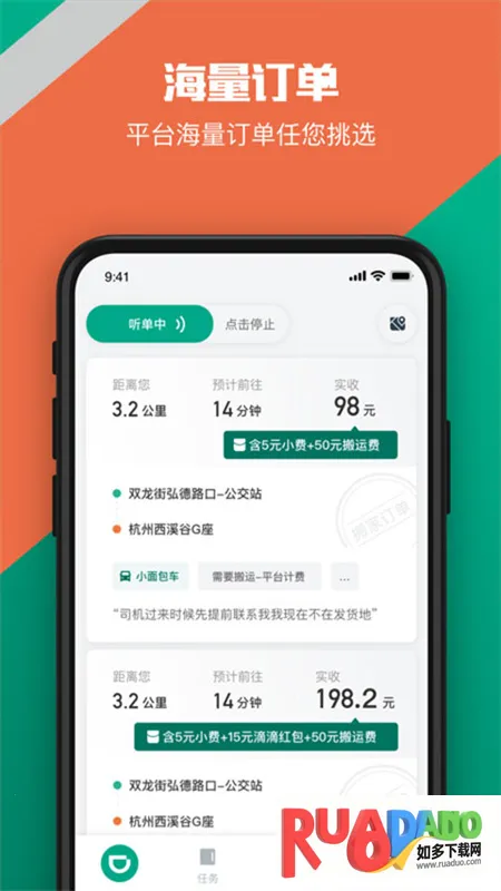 1. 海量订单来自滴滴千万级用户,源源不断,点击听单就能接到手软。