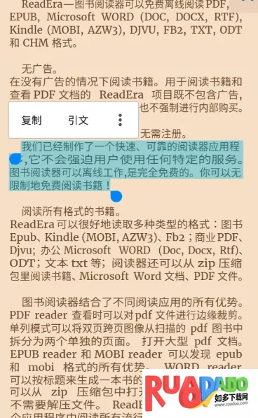 3. 支持内容复制、引文等操作,方便用户管理本地图书。