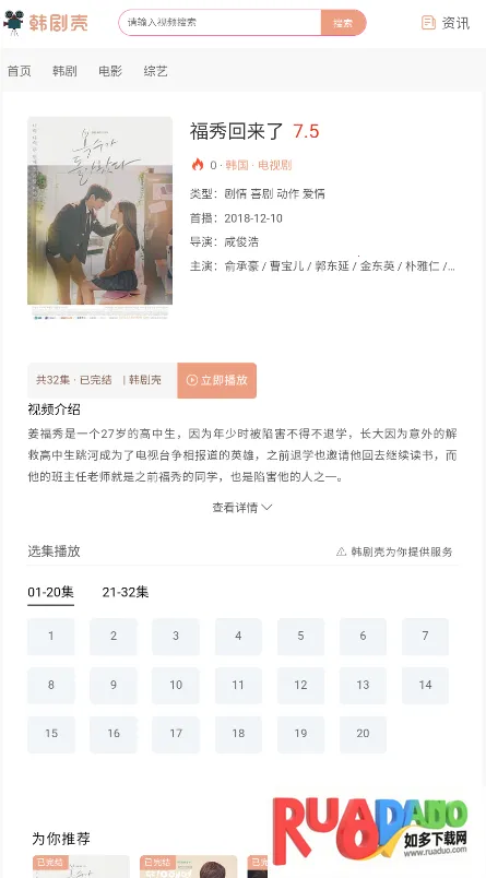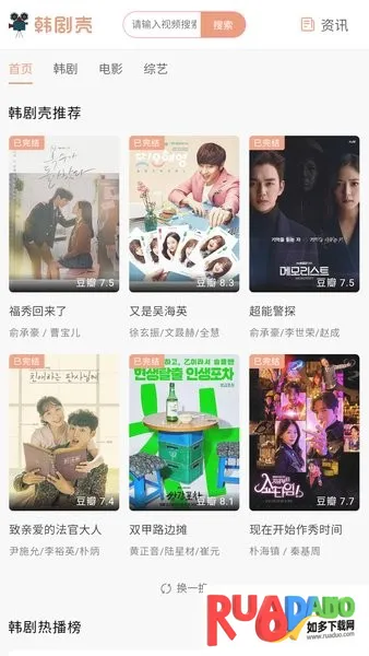 韩剧壳是一款深受韩剧爱好者好评的手机追剧软件,汇聚海量韩剧、电影、综艺资源。界面简洁无弹窗,播放流畅,智能推荐,支持离线缓存、多设备同步。提供高清免费资源,无广告不收费,还能与韩电视台同步追剧。