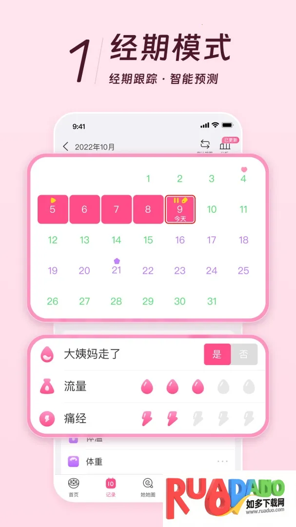 1. 提供经期、备孕、怀孕、育儿四大模式,满足女性不同阶段需求,从初潮到更年期全生命周期覆盖。