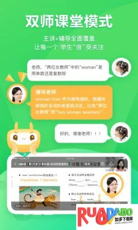 2. 双师直播教学模式,主讲老师生动授课,辅导老师全程关注。