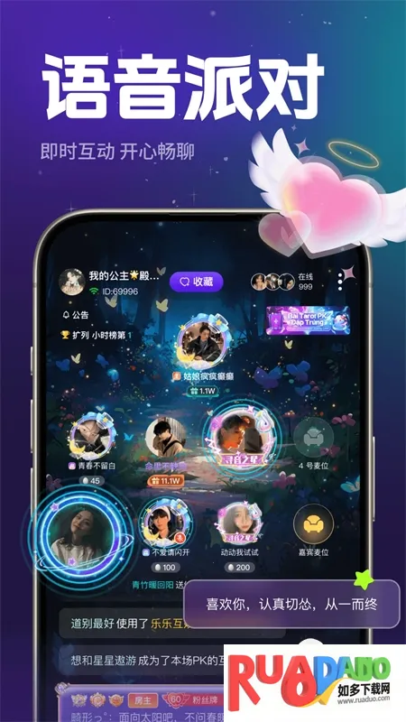 乐乐语音最新手机版是青岛声贝网络科技有限公司开发的语音社交软件。专为年轻人打造,有声音匹配、语音派对等功能,支持游戏开黑、多人语音,能记录分享动态,通过真人认证,安全可靠,满足多样交友需求。