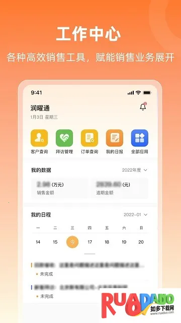 润曜通官方手机版是全能办公助手,界面简洁易上手。功能涵盖客户管理、办公管理等,有安全保障、即时通讯等特色,还能智能分析数据,适用于多行业,提升工作效率,开启卓越办公体验。