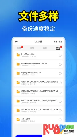 4. 支持微信、QQ 聊天记录备份,能保存手机全量数据,文档压缩包等也能备份,自动分类归档,自定义保存路径。