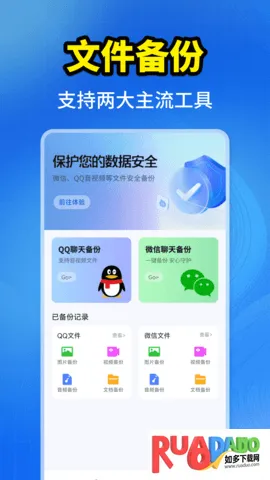 聊天记录一键备份App是合肥多读科技有限公司杭州分公司开发的生活服务类软件。专为安卓用户打造,支持微信QQ等聊天记录备份,含文字图片等,操作简单,能本地或云端备份,保障数据安全隐私,还有多种实用功能。