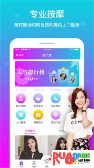 按个摩上门按摩2026官方最新版本是深圳凸凸网络科技有限公司推出的按摩服务预约平台,支持到店与上门服务。有多样按摩项目,能精准定位技师,提供优惠,交易保障机制完善,功能丰富,已开通多地。