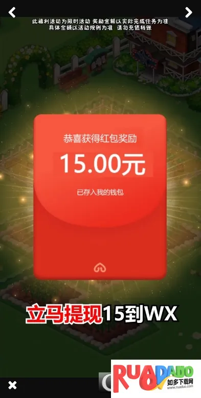 想赚钱又想找点乐子?幸福小农院就能满足你!这是一款超有趣的农家生活模拟软件。在这里,你可以体验平凡农夫的悠闲生活,种植各种农作物,养殖家禽动物。操作简单,画面小清新,随时随地都能玩。每天上线完成任务,就能获得现金奖励,娱乐赚钱两不误。比如种植蔬菜、完成订单和任务等都能得到红包。而且还有简单易行的挂机操作,哪怕脱机也能继续领红包。虽然收益不算高,玩一天可能也就挣几块钱,首次登陆能提现0.3元,之后要0.5元和30元起,还得满足条件,但不失为一种有趣的赚钱方式。如果你向往田园生活,想在游戏中体验种植收获的快乐,顺便赚点小钱,那就赶紧下载幸福小农院吧!