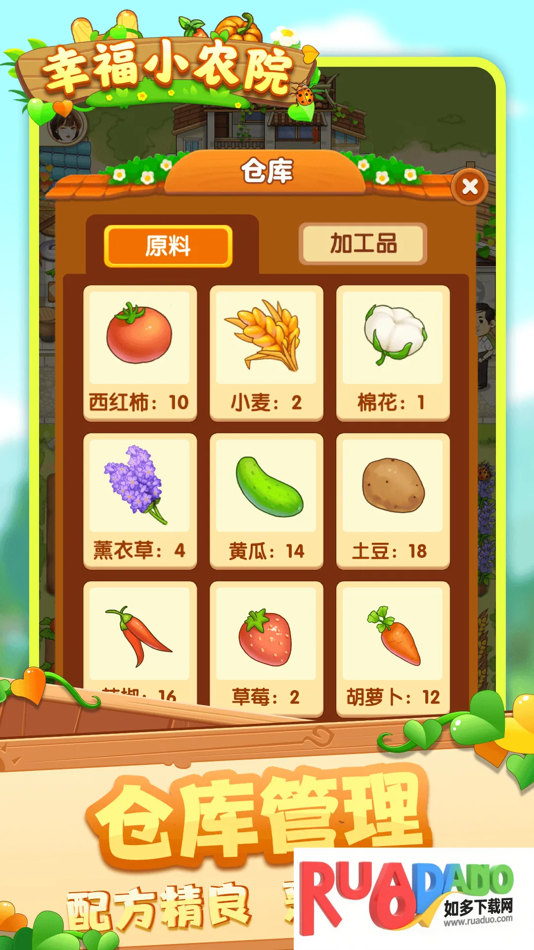 幸福小农院安卓版是一款模拟农家生活的休闲游戏。玩家可在线种植作物、养殖家禽,完成任务获现金奖励。操作简单,画面清新,还有多种玩法,能让你体验农夫生活,享受种植乐趣,娱乐赚钱两不误。