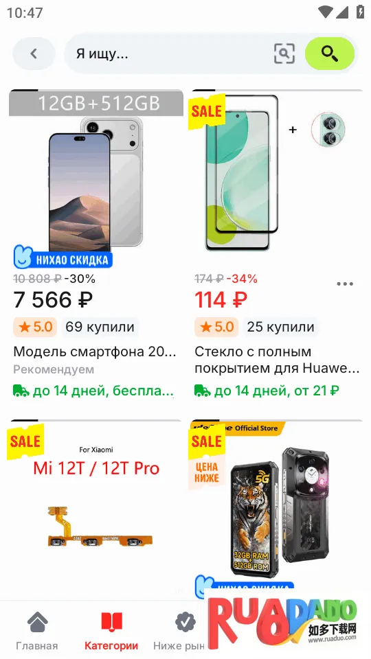 3. 交易平台电子产品等种类繁多,按评分、价格和新品筛选,购物体验好。