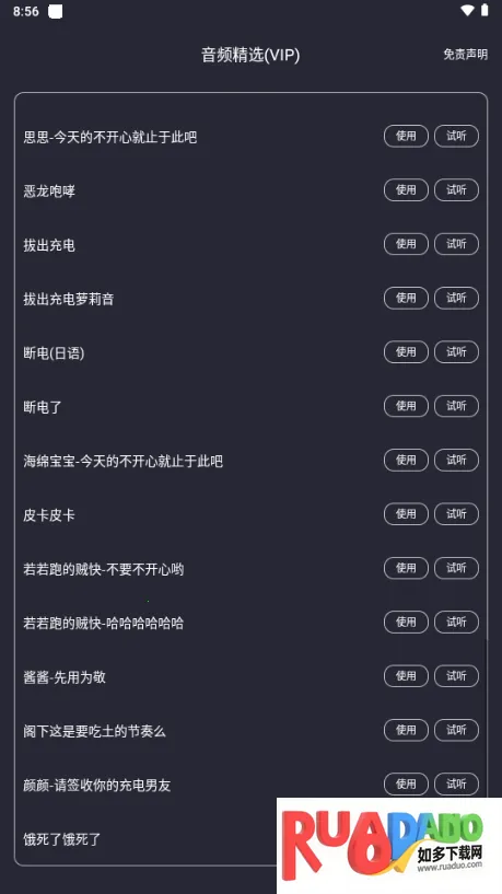 3、各种音频提示语应有尽有,所有提示音可免费下载使用,还能自定义编辑并分享给好友。
