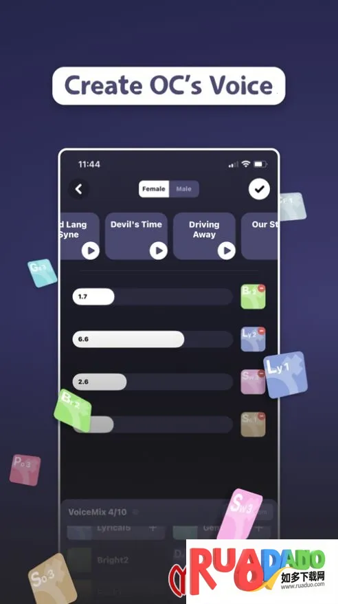 1. 能定制专属OC声线,通过不同声音配方创造多样声线,还可选择男女确定演唱音域,调制时能试听唱歌。