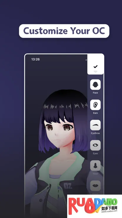 2. 可创造或上传OC形象,创建3D形象能选妆容发型服饰配饰等,也能上传已有OC图片。