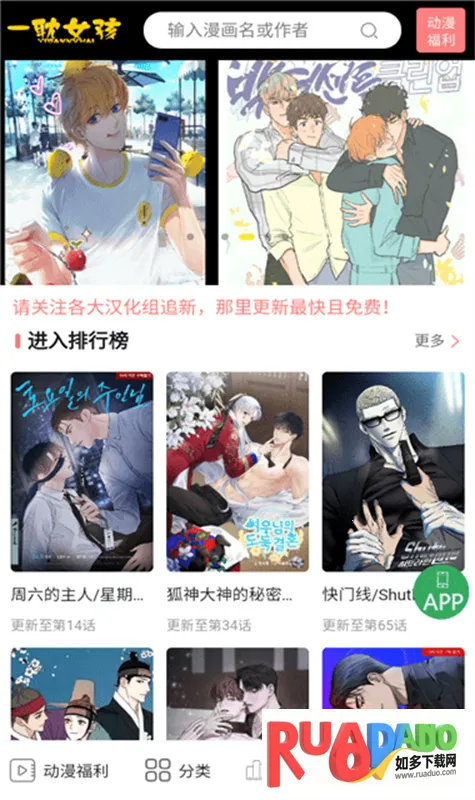 一耽女孩未删减版是专注耽美的免费漫画软件,漫画题材画风多样,无广告无删减。体积小巧易安装,更新快,有缓存功能。还设有专属分类,有智能图像增强等,能满足耽美爱好者多样阅读需求及互动创作。