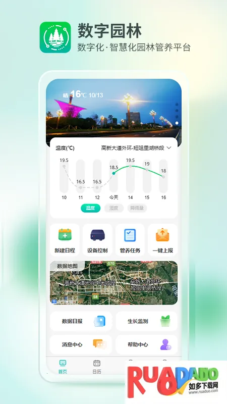 数字园林app是禾大科技旗下的园林数字化管理工具,提供智慧化管养平台。可实时监测温湿度等,实现精准高效养护,涵盖智能灌溉、数字化管理、过程追溯、分析预警等功能,打造数字一体化产业链。