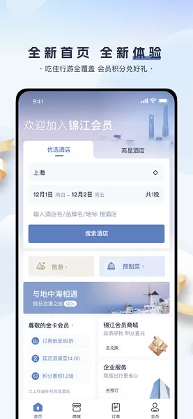 锦江荟是上海锦江国际电子商务有限公司打造的旅游出行服务软件,提供便捷酒店预订、积分商城、美食旅游攻略推荐等服务。软件界面简洁、功能丰富,涵盖吃住行游购,会员可享多重权益与优惠 。