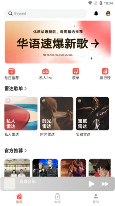 2、每日推荐不同新歌,还有私人FM电台,带来丰富收听选择。
