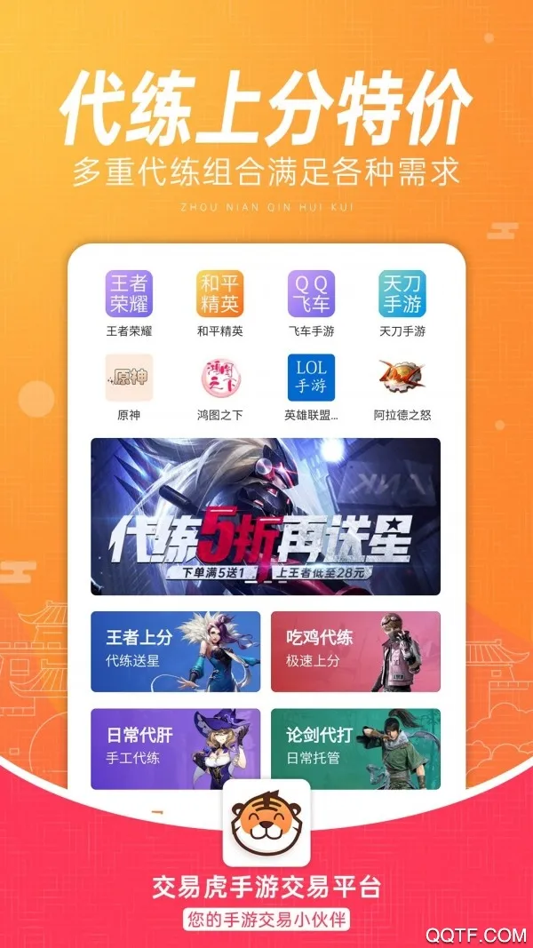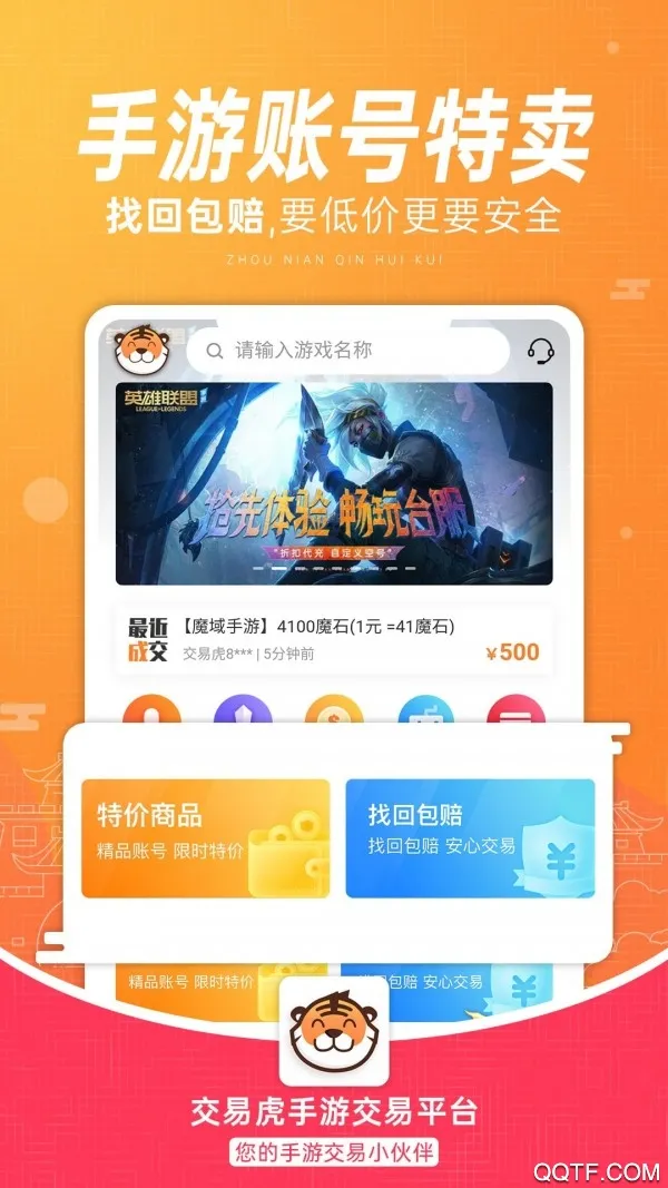 交易虎是专业手游交易平台,支持王者荣耀等多热门游戏交易。提供账号、游戏币、装备道具交易及代练服务,有全天客服,保障隐私安全,手续费全免,界面、支付持续优化,交易便捷放心 。