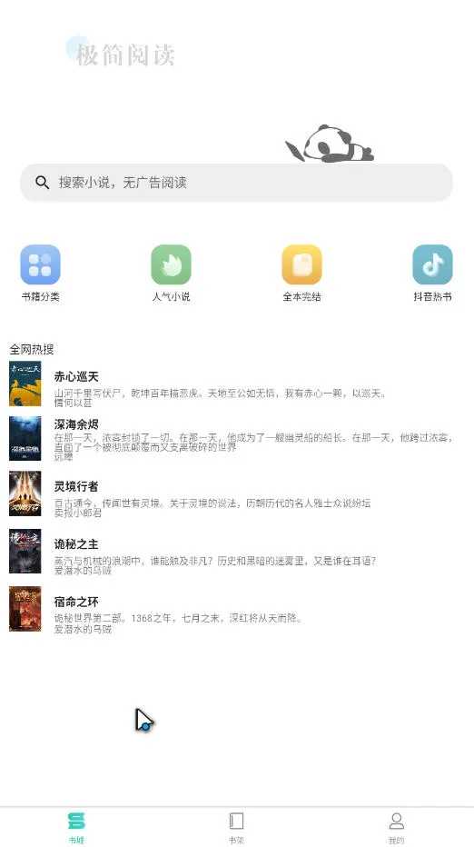 2. 资源丰富,涵盖各类热门题材,经典完结等小说皆有。
