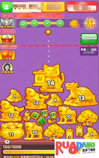 黄金满满是休闲益智游戏,通过合成玩法完成关卡挑战获红包奖励。操作简单易上手,有丰富黄金珠宝元素,关卡多且不断更新,还有多样道具。采用卡通画风,互动性强,适合碎片时间玩。