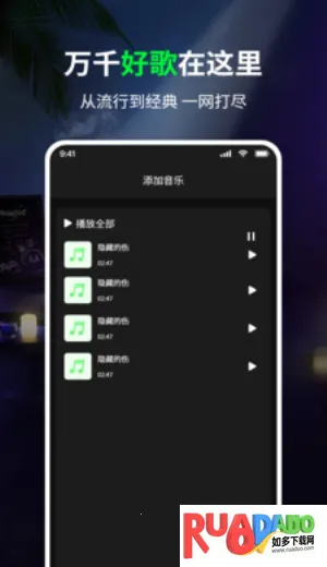 如果你想免费下载歌曲,那这款免费听歌曲软件就很不错。它能为你提供热门歌曲,还能自行添加歌曲到歌单,下次查找超方便,每天也会自动推荐好听的歌。软件特色满满,免费收听优质歌曲,纯音乐资源音质佳,戴上耳机仿佛身临其境,还原真实音乐环境。根据歌单自动推荐歌曲,挖掘更多好听作品。软件亮点众多,涵盖多种音乐风格,自动同步歌词,让你能跟着唱。利用午休等碎片时间听歌很合适。其功能强大,自动匹配高质量音乐资源,可按需切换音质,还能下载到手机,播放更稳定。强大搜索框,输入歌名或歌手名就能自动定位。简直是日常听歌必备工具,通勤、健身、锻炼时打开,让生活轻松愉快,感兴趣就快来体验吧。