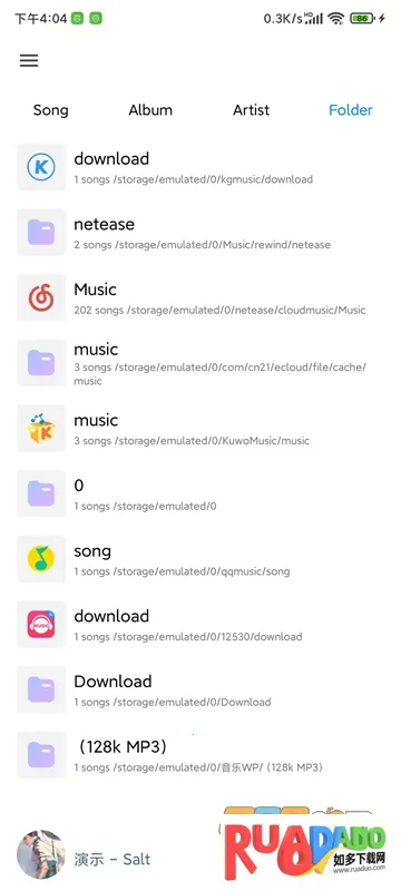 3. 支持本地音乐播放,能找到本地所有音频文件并区分。