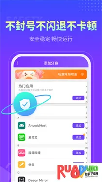 分身大师能帮你轻松实现虚拟定位。它是一款超好用的手机多开分身处理器软件。有了它,工作娱乐两不误,所有内容互不干扰。使用时,先打开软件同意用户协议。点击主页添加分身,就能多开各种应用,几乎所有游戏都能多开。它还支持自定义设备名称、伪装地理位置等。比如你想在社交软件上“身处”不同位置与好友互动,或者在游戏里体验别样地点的玩法,用分身大师就能轻松做到。它轻便快捷,体积小,支持快捷图标和自定义名称,多开个数无上限。定价良心,付费购买的分身换手机还能继续免费使用。而且技术先进,首创本地直接多开正版应用,安全无隐患,让你放心使用,满足你虚拟定位等各种多开需求。